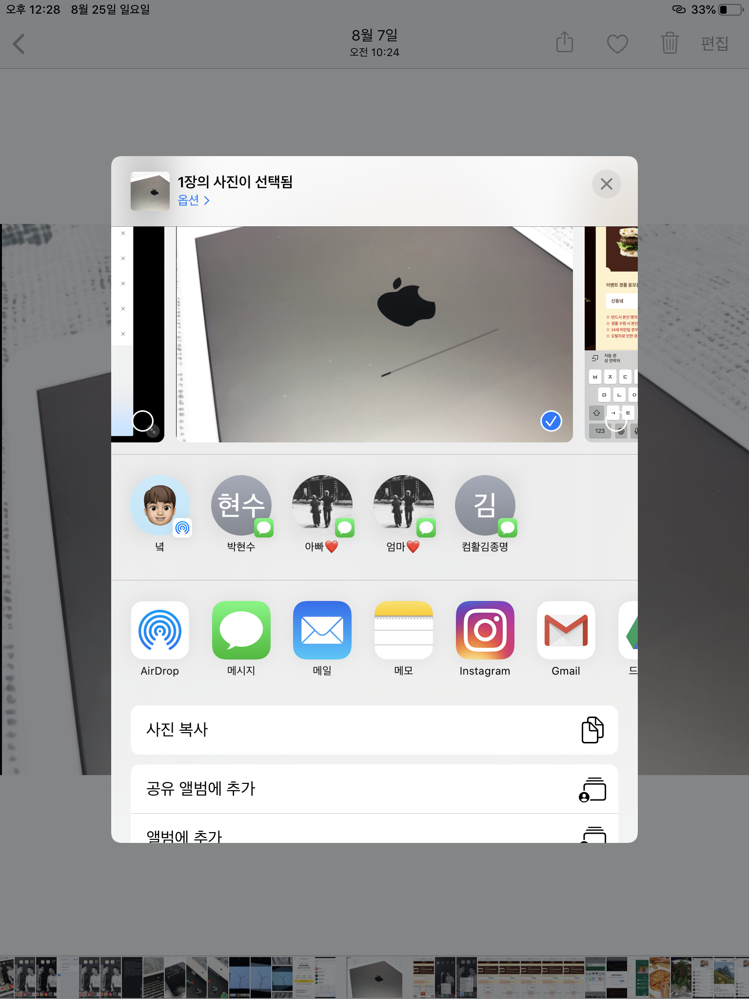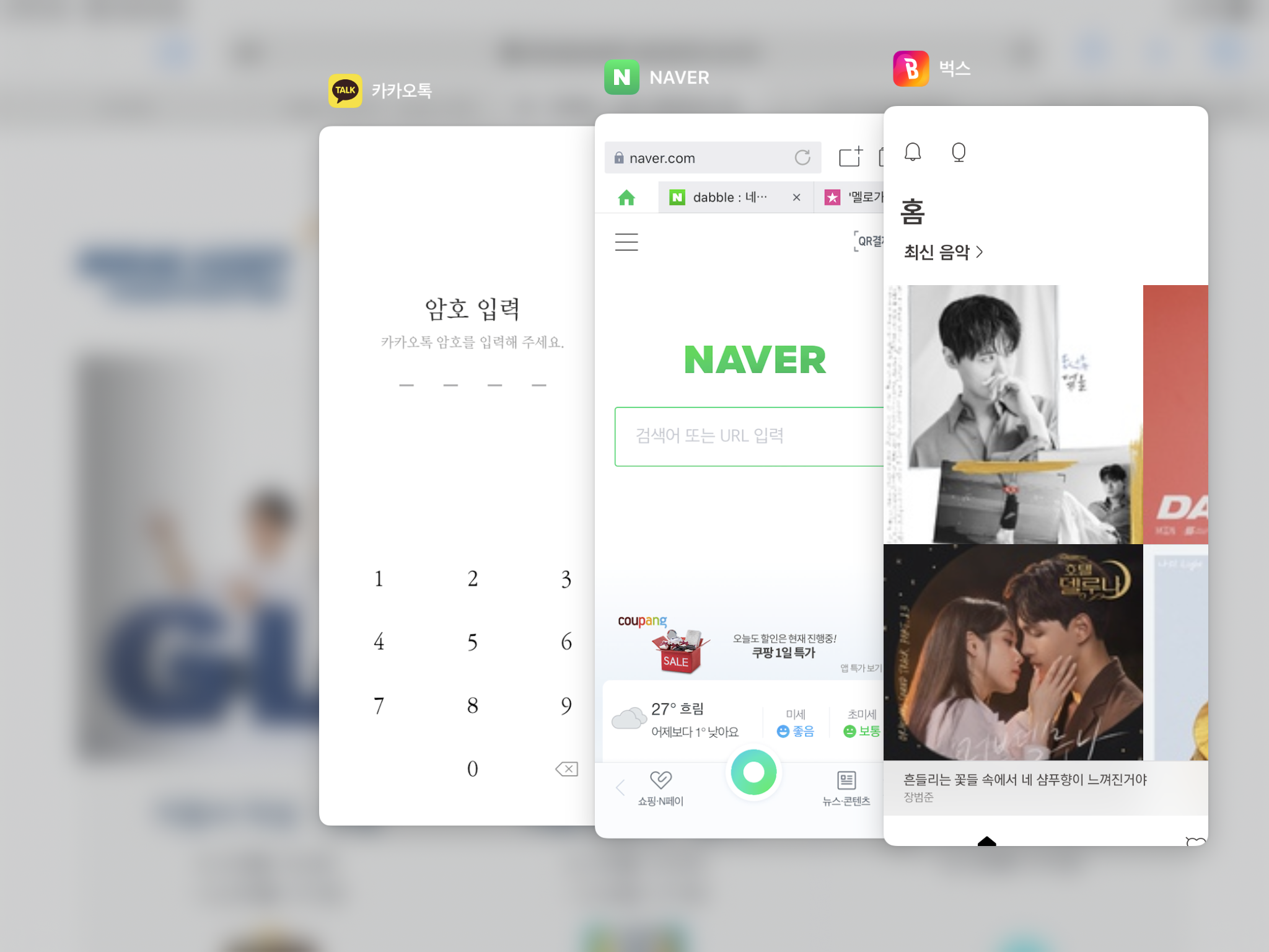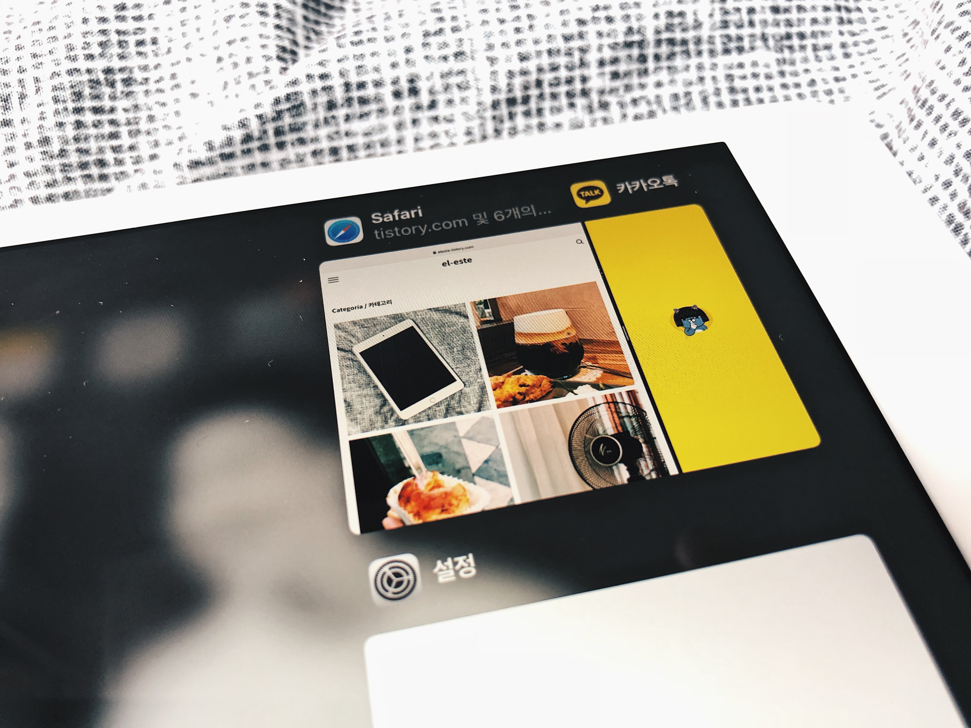 앞서 언급했던 것처럼 이번 iPadOS13에서는 아이패드의 멀티테스킹 능력이 크게 향상되었다. 2분할 이상의 다분할은 여전히 지원하고있지 않지만 사파리-사파리, 메모-메모 등 기존에 지원하지 않던 동일 앱간 멀티테스킹이 가능해졌다. 마찬가지로 현재는 기본 앱들만 지원하고 있는 상태에며 향후 업데이트를 통해 서드파티 앱들도 가능해지 예정이다. 두개의 브라우저를 사용하고자 할 때 사파리-네이버를 켜놓는 식으로 하든지 탭간 이동을 통해 다소 섹시하지 못한 방법을 사용하고 있었던 골치가 말끔히 씻겨내려간 순간. 또 화면 위 팝업창처럼 띄워져있던 앱의 전환 방식도 수월해졌다. 기존에는 독을 올려 거기서 앱 아이콘을 질질 끌고왔어야했지만 지금은 보는 것처럼 간단한 제스처를 통해 멀티테스킹할 어플간의 전환이 용이해졌다. 간단한 제스처는 기존에 없던 바(아이폰X이상의 모델이 하단에 가진 그것)가 팝업 어플의 하단에 생겨 아이폰에서 멀티테스킹을 하듯 위로 살짝 들춰올려주면 저렇게 목록이 촤라락하고 펼쳐지는 것을 볼 수 있다.