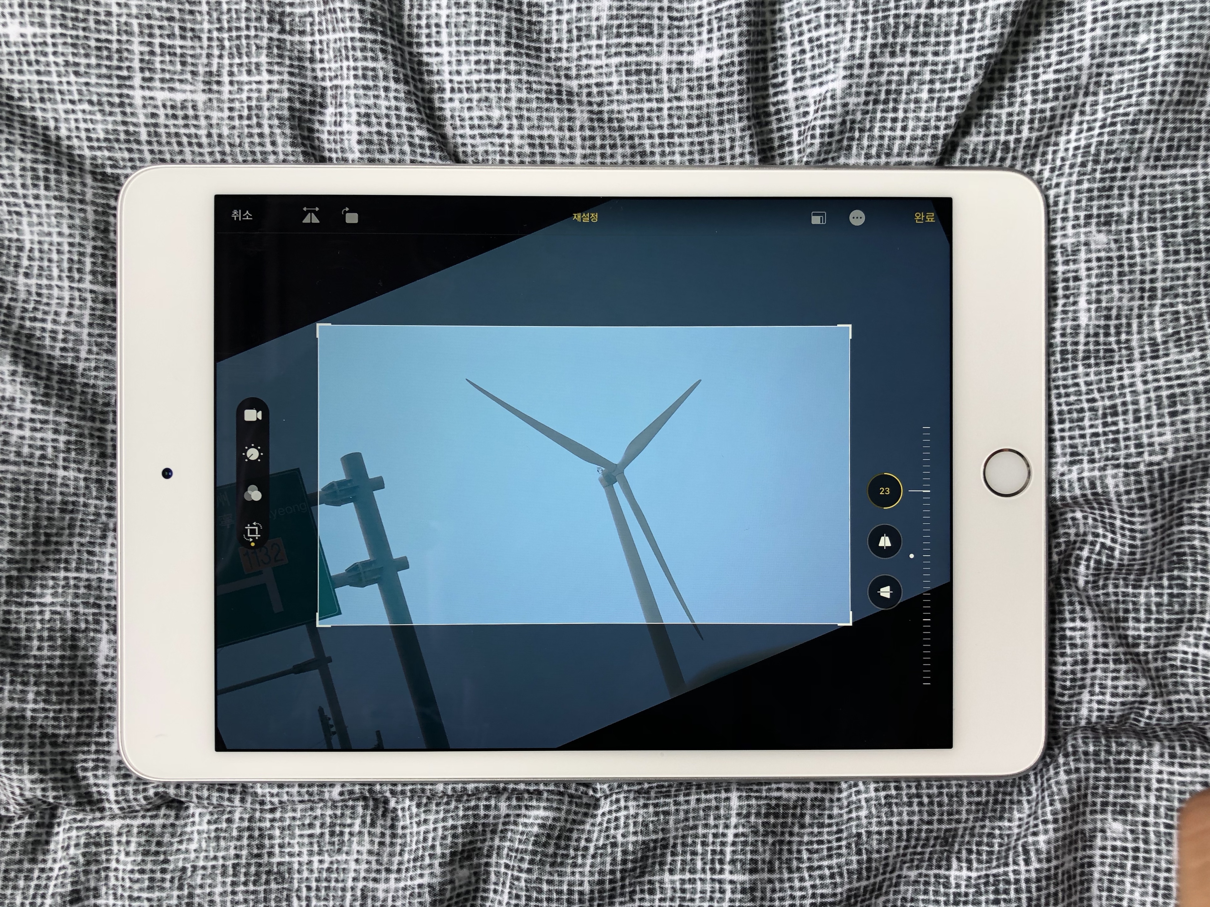 드디어 볼륨버튼이 화면 바깥쪽으로 밀려났다. 아이폰의 경우 화면의 볼륨버튼 쪽에 볼륨버튼의 크기에 맞추어 앙증맞게 자리했고 아이패드는 그런 앙증맞은 인터페이스보단 시크하게 화면 상단을 택했다. 첫 동작시에는 굵게 연속된 이어지는 동작시에는 얇게 변해 최대한 화면을 방해하지 않으려는 노력이 가상해보인다.
