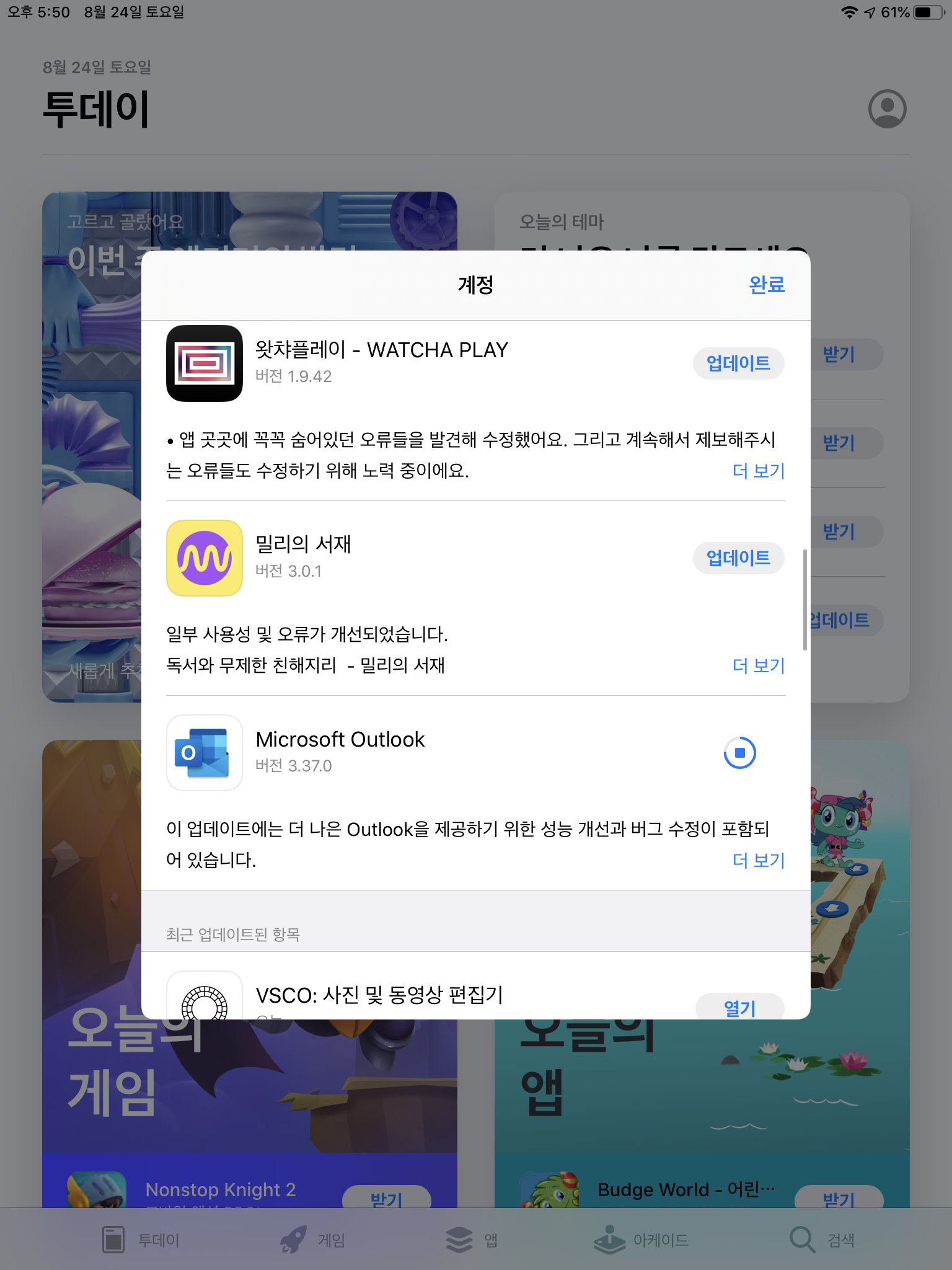 일말의 아쉬운 점을 꼽자면 iOS13부터 구독형 게임서비스인 애플 아케이드가 추가되면서 앱스토어 상에 원래 자리하고 있던 업데이트 버튼이 사라졌다. 이건 모서리에 프로필 아이콘을 눌러 들어갈 수 있는 '계정'에 현재 자리하고 있는데 향후 베타 버전에서 수정이 되는 사항인지 앞으로도 이곳에 자리할지 모르겠지만 그 깨작임이 깨나 불편하다.